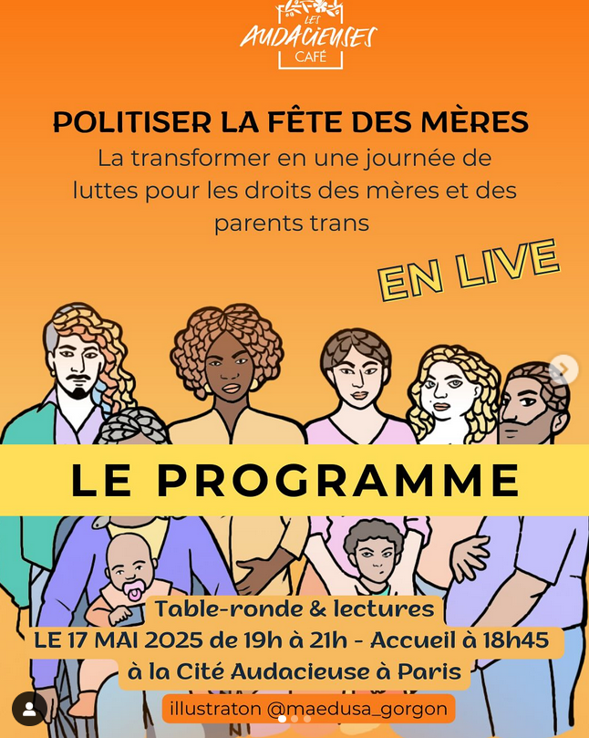 Le 17 mai, retrouvez des intervenantes incroyables pour une table ronde et un live autour de leurs parcours et leurs luttes pour le statut de parent isolé, transmission et postcolonialité !